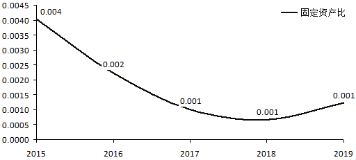 它的固定资产比在2015年只有0.004,这本来就已经很低了。之后,更是持续下滑,2017—2019年一直保持在0.001。这是一种极致的固定资产比,图6-6更加直观。