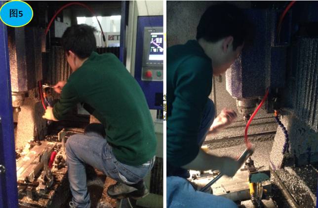 见上图,机加车间主管把切削液的管子改了一个走向,直接链接雕洗机的钻头处。