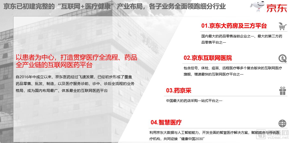 在这条曲线背后,京东的互联网+医疗健康版图已有了完整架构,而且各项自业务均已在细分行业处于领跑位置。”