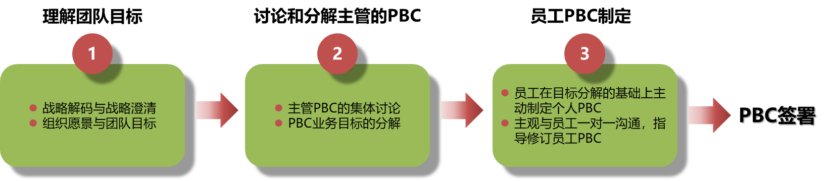 郭士纳在IBM大力推行PBC,以及其背后希望传导的价值理念,是让员工清楚地知道,PBC的绩效管理过程: