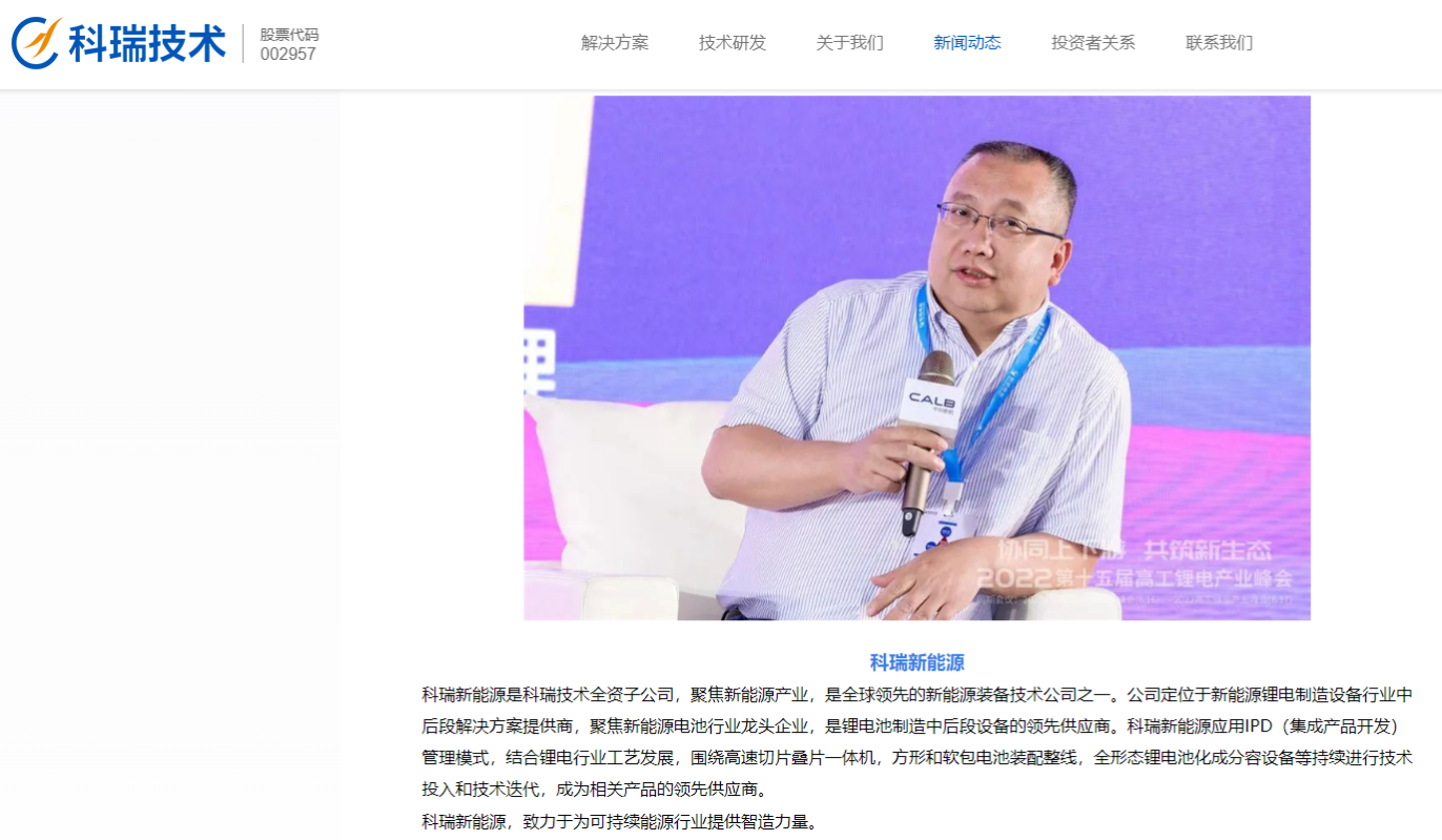 科瑞新能源应用IPD(集成产品开发)管理模式,结合锂电行业工艺发展,围绕高速切片叠片一体机,方形和软包电池装配整线,全形态锂电池化成分容设备等持续进行技术投入和技术迭代,成为相关产品的领先供应商。