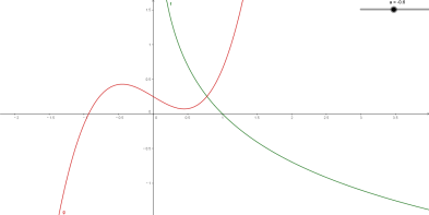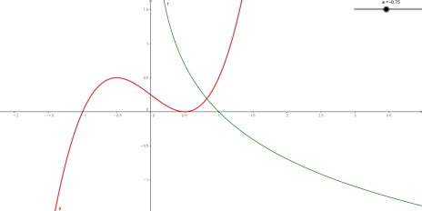 两个零点,都大于零小于1,从而有三个零点.