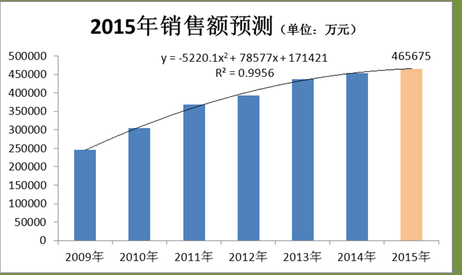 预设销售增长属于线性相关的关系,那么采用一元二次方程的方法,即可预测2015年公司的整体销售目标应该是多少。