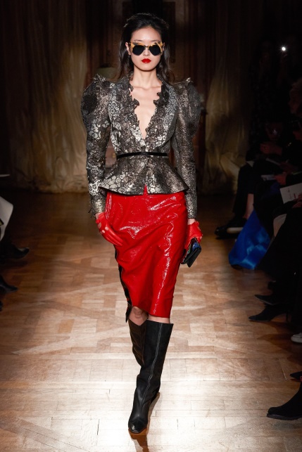 增加或者降低一种颜色的明度或者纯度,或者同时改变两个颜色的明度或者纯度,达到和谐统一的视觉效果。如图8-21所示,深红色大衣与墨绿袜子搭配,同时降低了红色和绿色的纯度,达到和谐统一的视觉效果。