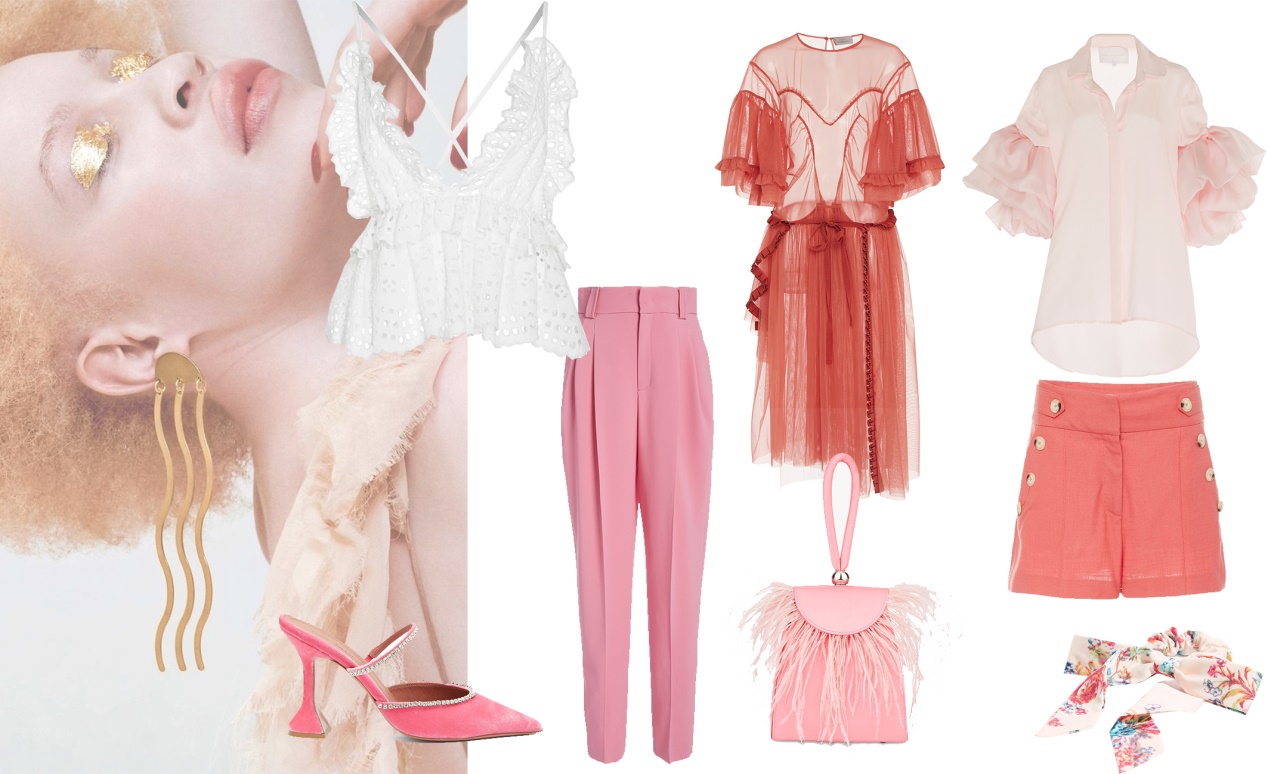 甜美温柔的货品基调:说到甜美,我们一定能想到粉色,粉色是典型的的女性色彩,跟带有狂热感情的红色不同,粉色是弱化了的红色、美化了的白色,带有柔软与顺从的感觉。买手可尝试将粉色与白色组合在一起,粉色会显得更加清新娇嫩。如图8-25所示。