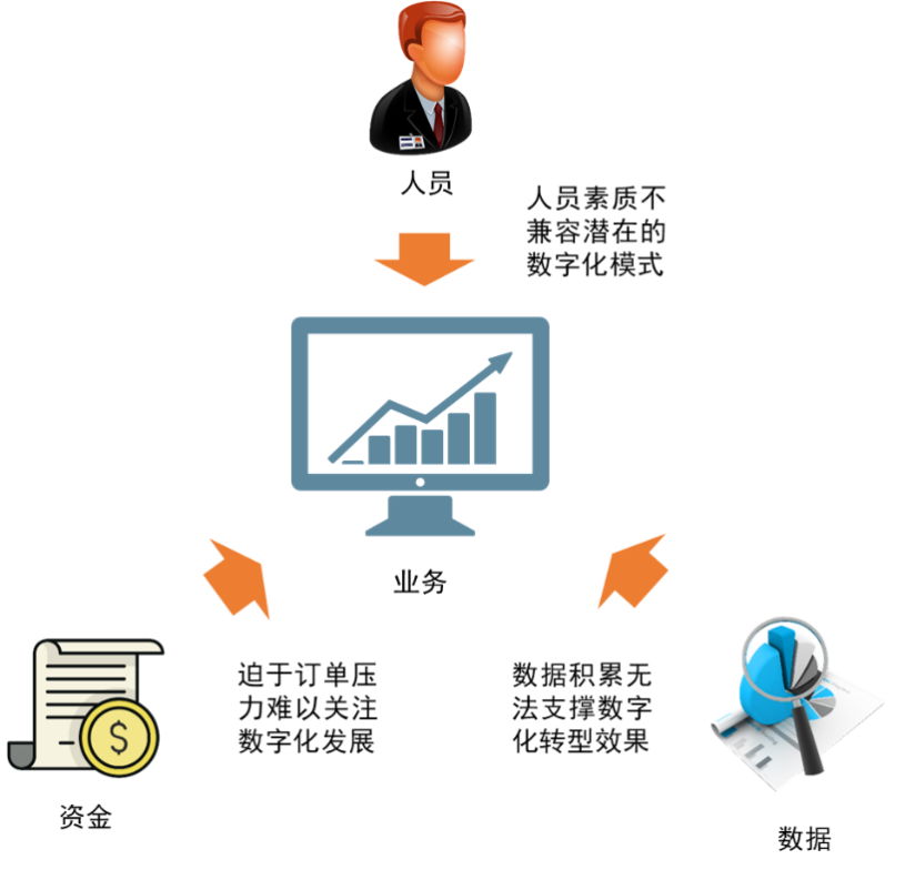 在企业的数字化转型工作中,不同企业都会遇到各种各样的落地问题。根据行业差异和规模差异,每个企业所面临的具体问题都大不相同。本节我们主要来回答和总结中小企业数字化转型工作中面对的具体实践困境,并分析其背后的形成原因。
